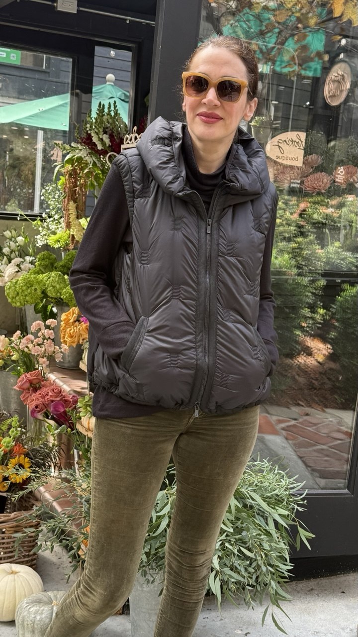 The Beate Heyman vest features a refined diamond quilting pattern that adds texture and sophistication. Designed with a sleek stand-up collar and a central zip closure, it offers both style and practical warmth, making it a versatile addition to your outerwear collection.