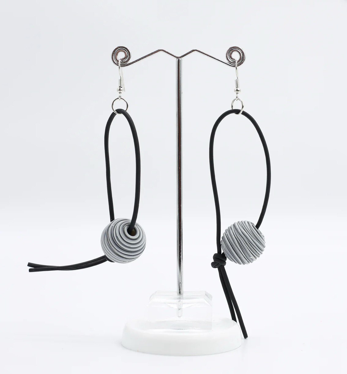 Handcrafted polymer clay beads suspended from a supple leather string, these earrings showcase artisanal detail with contemporary appeal. The lightweight clay construction ensures all-day comfort, while the organic leather cord adds textural contrast and earthy sophistication. Each piece reflects meticulous craftsmanship, making them versatile accessories that elevate both casual and refined wardrobes. Perfect for those who appreciate distinctive, wearable art.