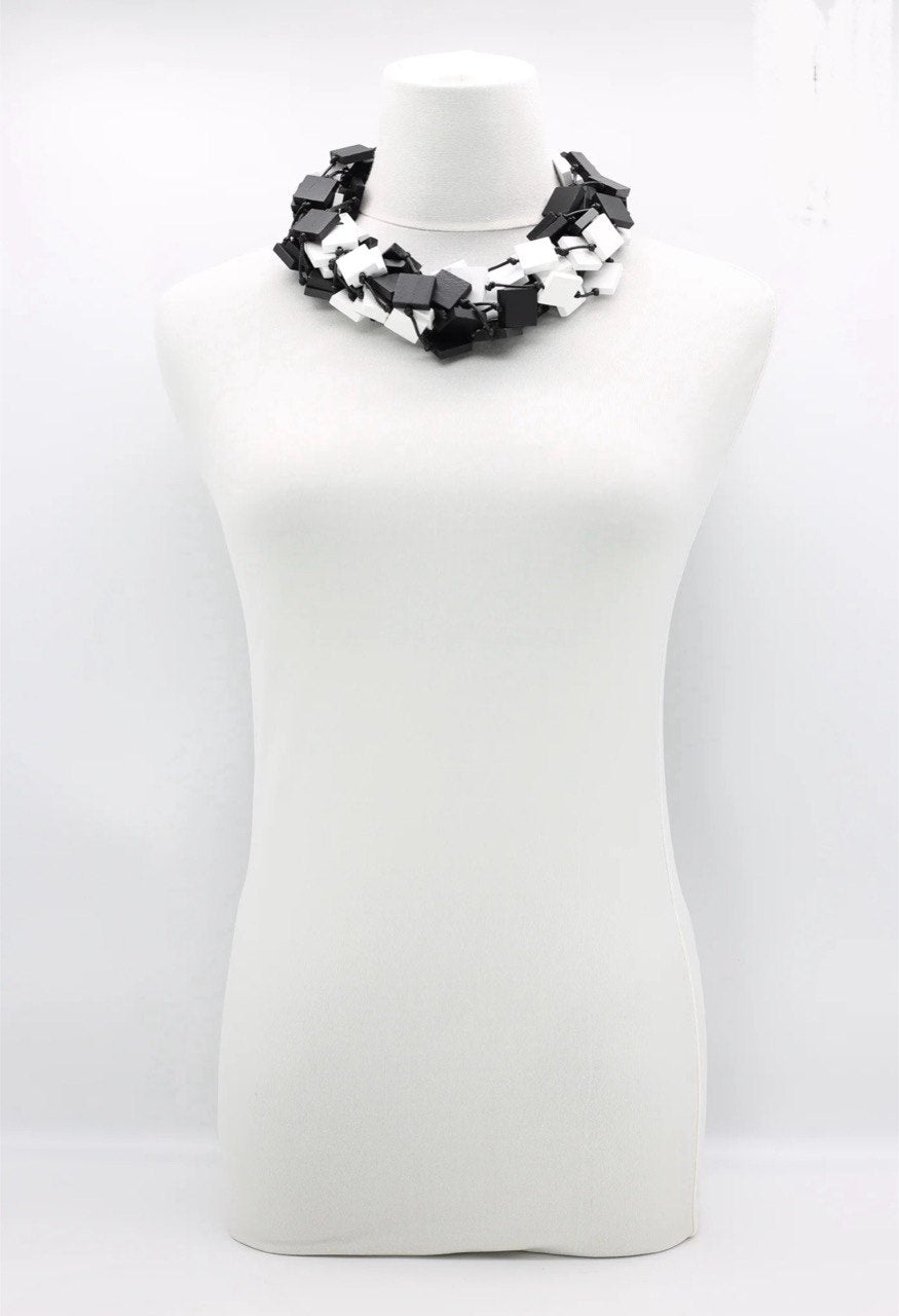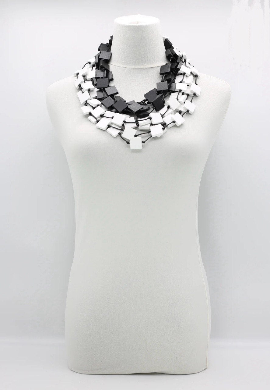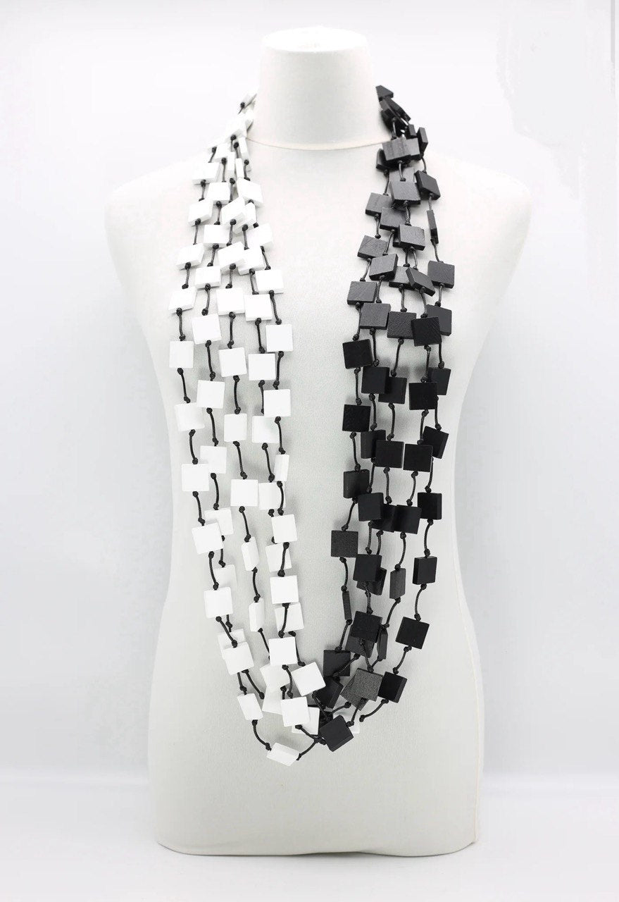 Handcrafted from recycled wood, these striking square beads feature a sophisticated two-tone design with crisp white and black divided sides. Perfect for jewelry makers and artisans seeking sustainable materials with visual impact, each bead showcases natural wood grain while maintaining precise geometric form. The contrasting color blocking adds contemporary flair to necklaces, bracelets, and mixed-media designs. Ideal for creating bold statement pieces with an eco-conscious edge.
