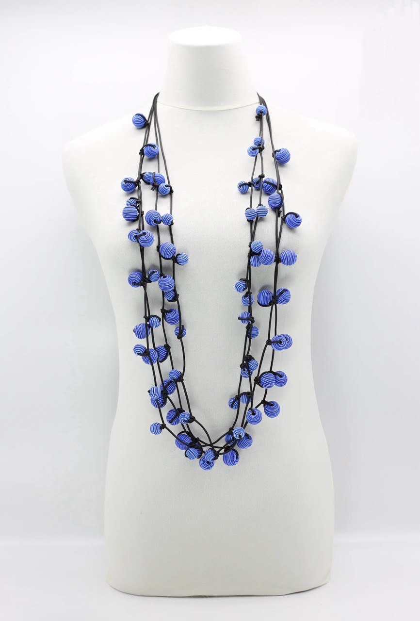 This artisan polymer clay necklace features five intricately crafted strands, each showcasing unique bead designs that demonstrate masterful polymer work. The multi-strand construction creates dimensional depth and visual interest, while the lightweight polymer composition ensures comfortable all-day wear. Perfect for layering or wearing as a statement piece, this necklace combines contemporary design with meticulous craftsmanship. The durable polymer beads resist fading and maintain their vibrant finish through regular wear, making this an investment-worthy accessory for discerning collectors and fashion enthusiasts alike.