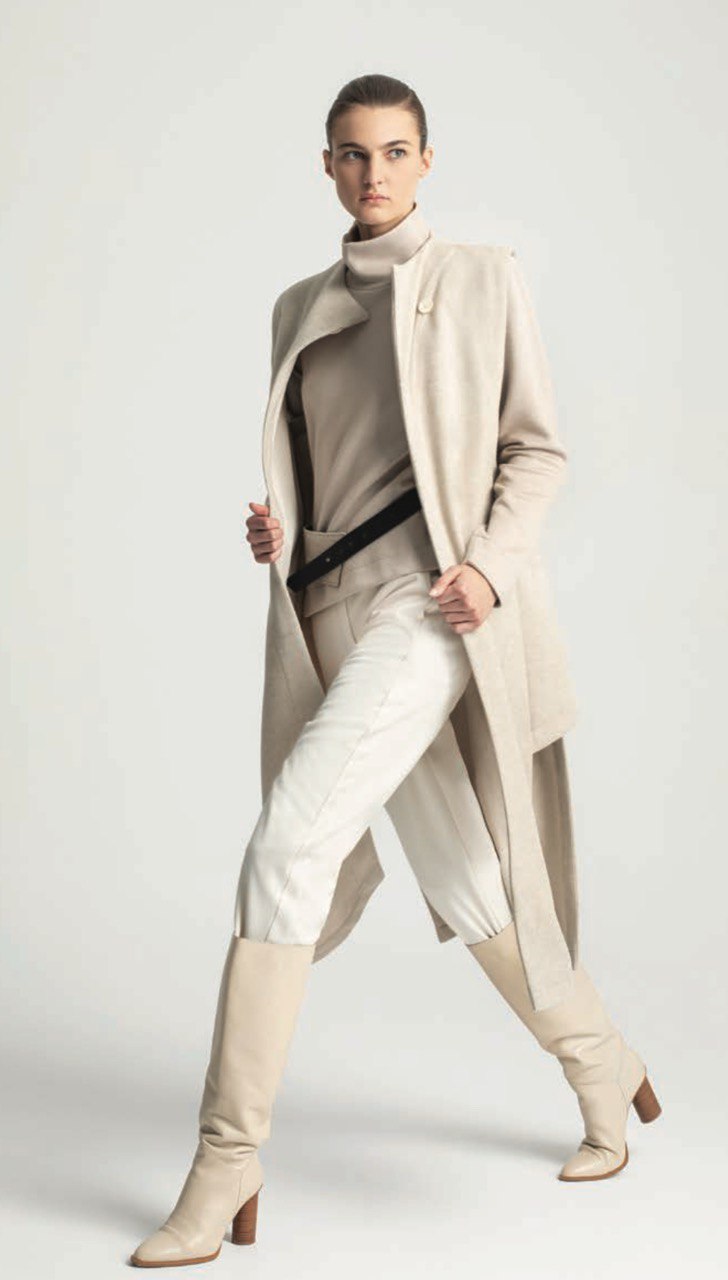 The Lotus Dander Gilet combines modern elegance with edgy design, featuring a versatile neckline that can be worn open or buttoned up for tailored style. Its standout detail is the side with stepped hems, offering a distinctive, striking silhouette. Crafted from a soft, warm fabric, this gilet provides both comfort and refined sophistication, making it an essential layering piece for contemporary wardrobes.